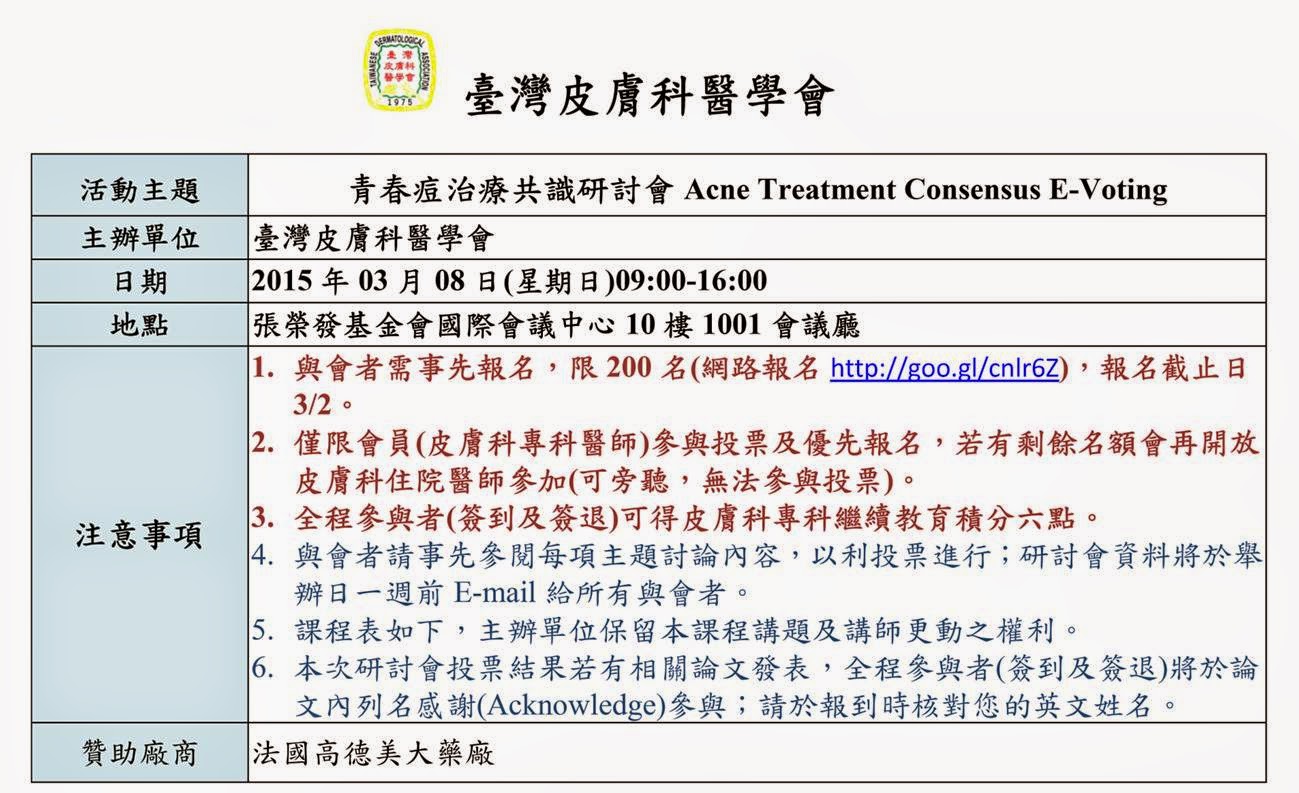 主辦單位:臺灣皮膚科醫學會Taiwanese Dermatological Association